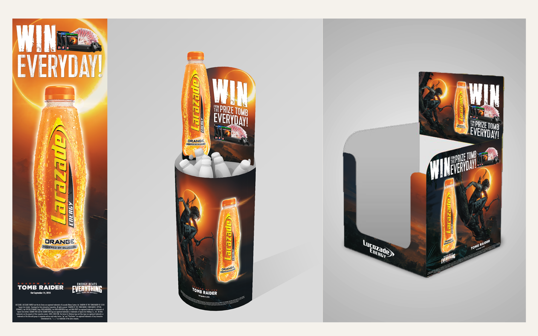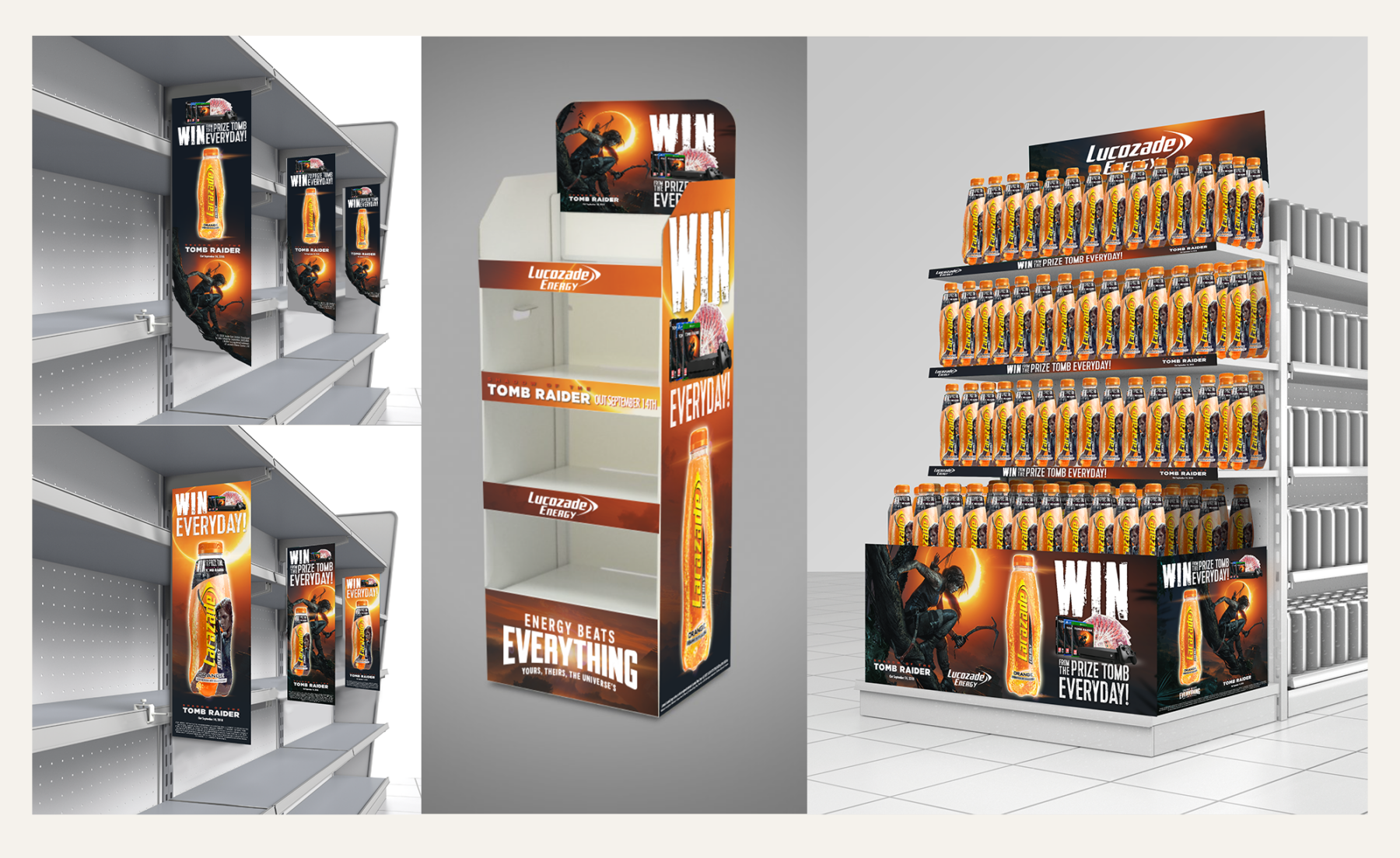 Suntory is one of the world’s largest beverage companies, and the work produced for them spans branding, key visuals, campaign materials and in-store point of sale across a portfolio that includes Lucozade, Ribena and Orangina. Alongside the established brands, the work has extended to Merchant’s Heart — a premium mixer brand that required a full visual identity bringing a different creative challenge to the relationship: defining something new rather than evolving something familiar.